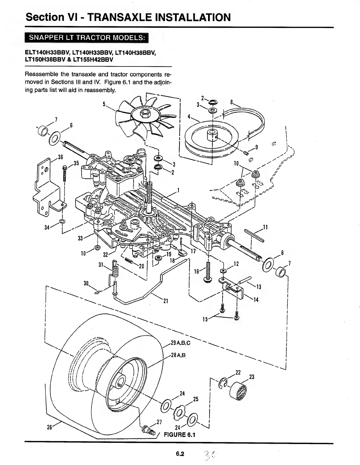 Snapper TUFF TORQ K50 - Section VI - TRANSAXLE INSTALLATION!.6.1-6.3