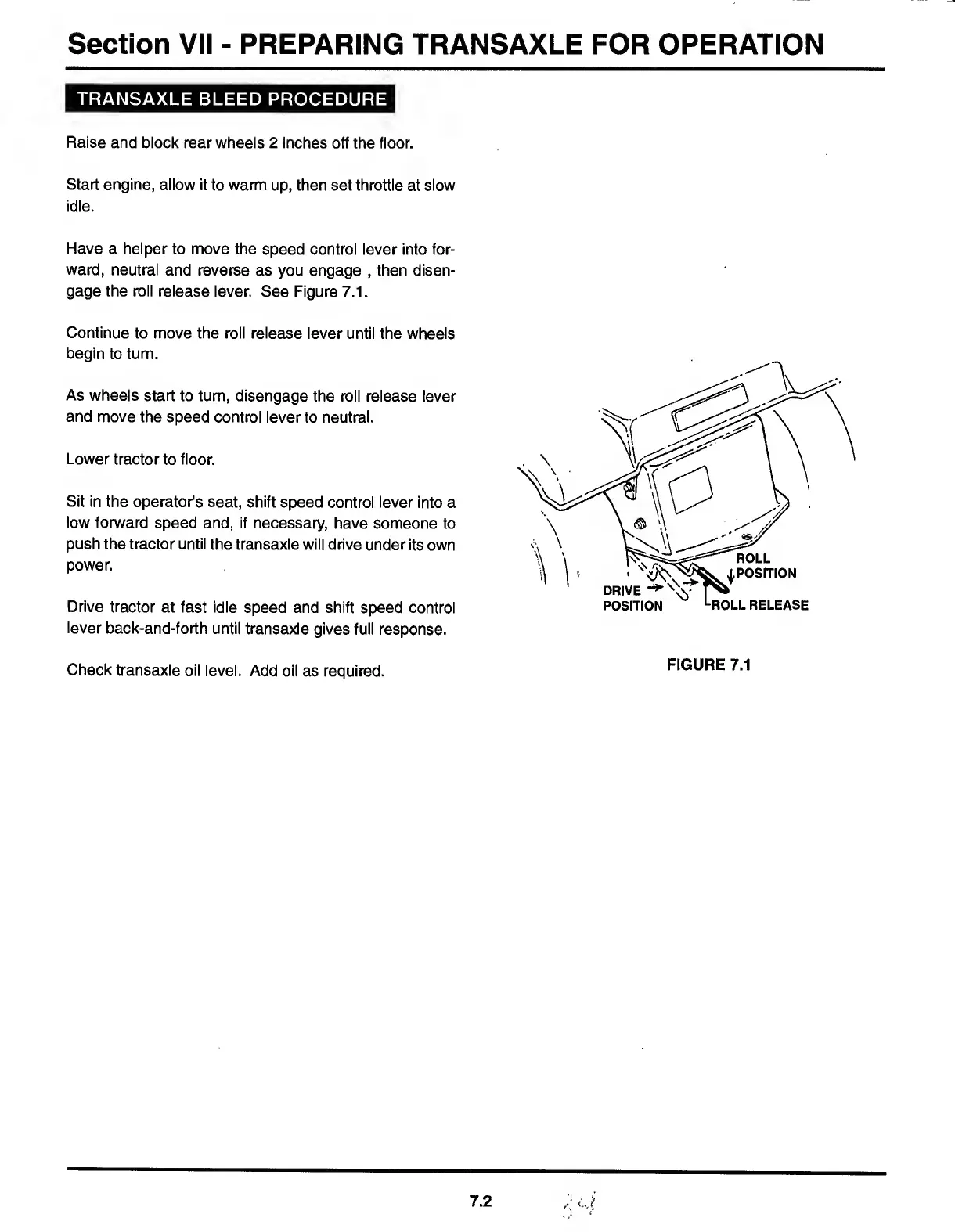 Snapper TUFF TORQ K50 - Section VII - PREPARING TRANSAXLE for OPERATION.7.1-7.2