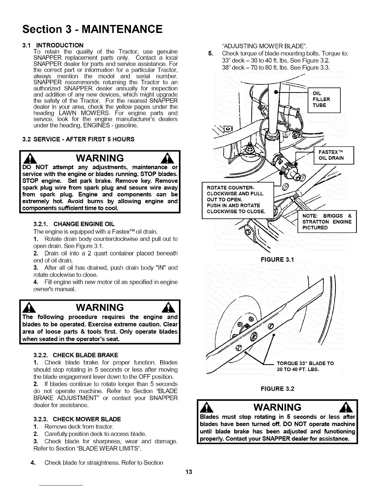 33" deck - 30 to 40 ft. Ibs.See Figure 3.2.