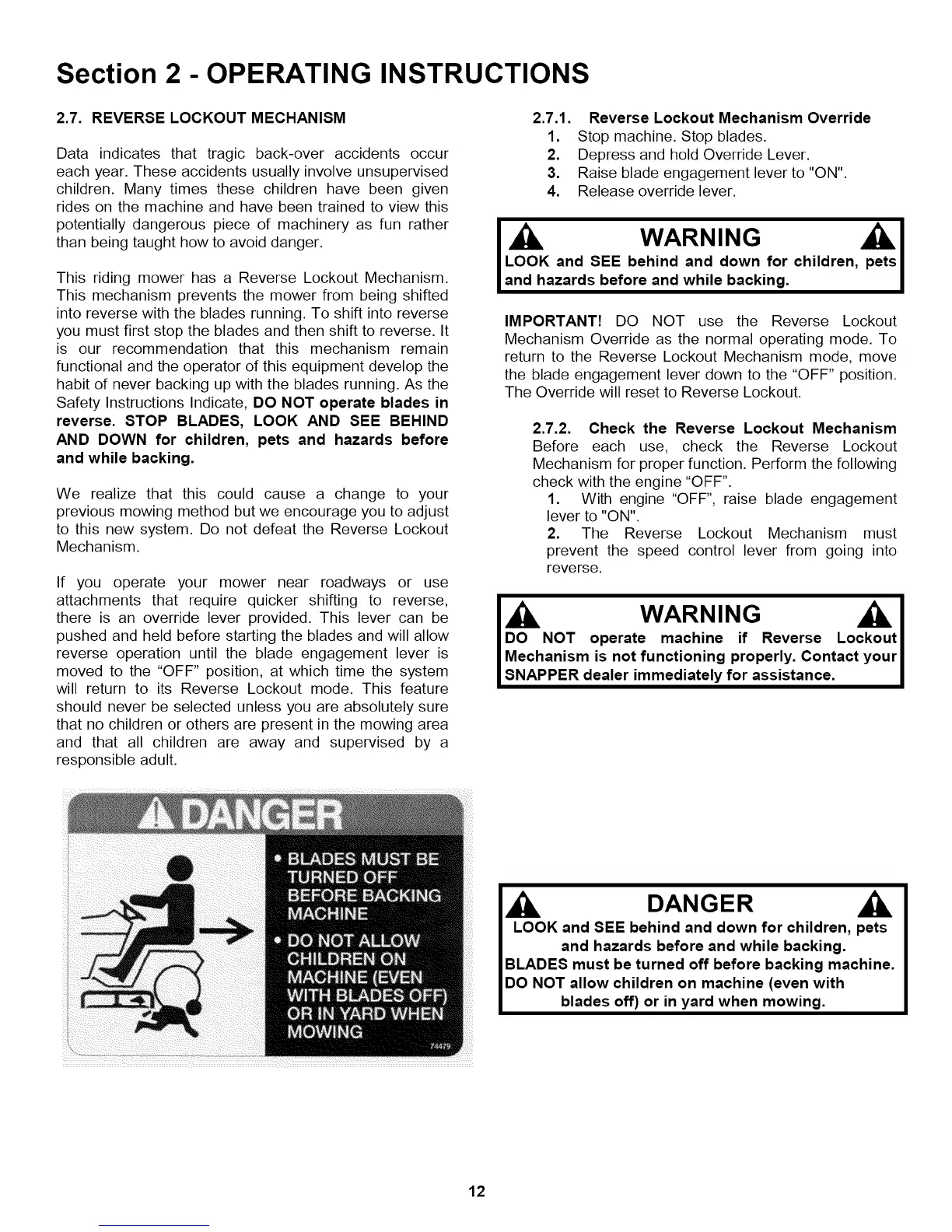 reverse. STOP BLADES, LOOK AND SEE BEHIND