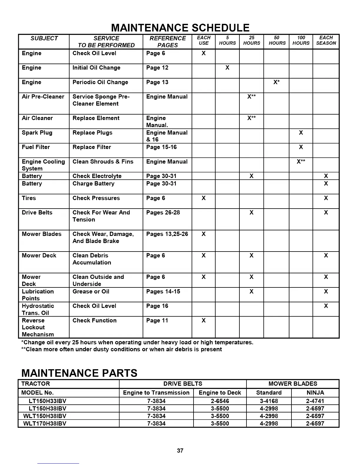 *Change oil every 25 hours when operating under heavy load or high temperatures.