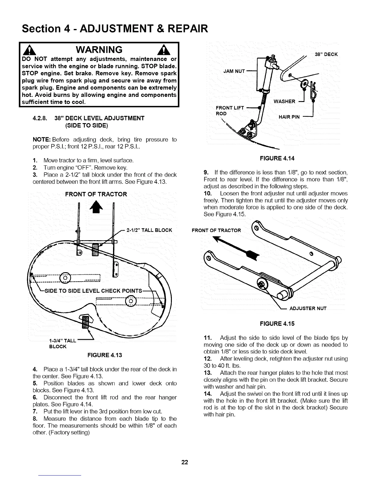4.2.8. 38" DECK LEVEL ADJUSTMENT