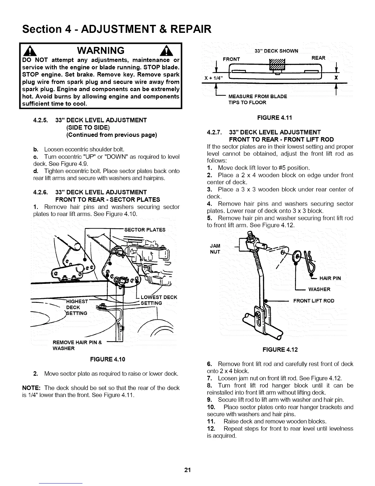 4.2.5. 33" DECK LEVEL ADJUSTMENT