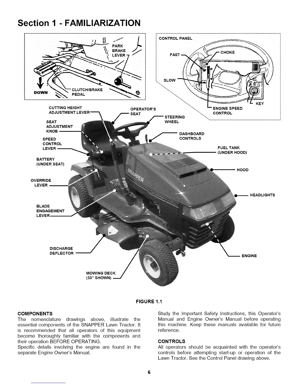 Lawn Tractor. See the Control Panel drawing above.