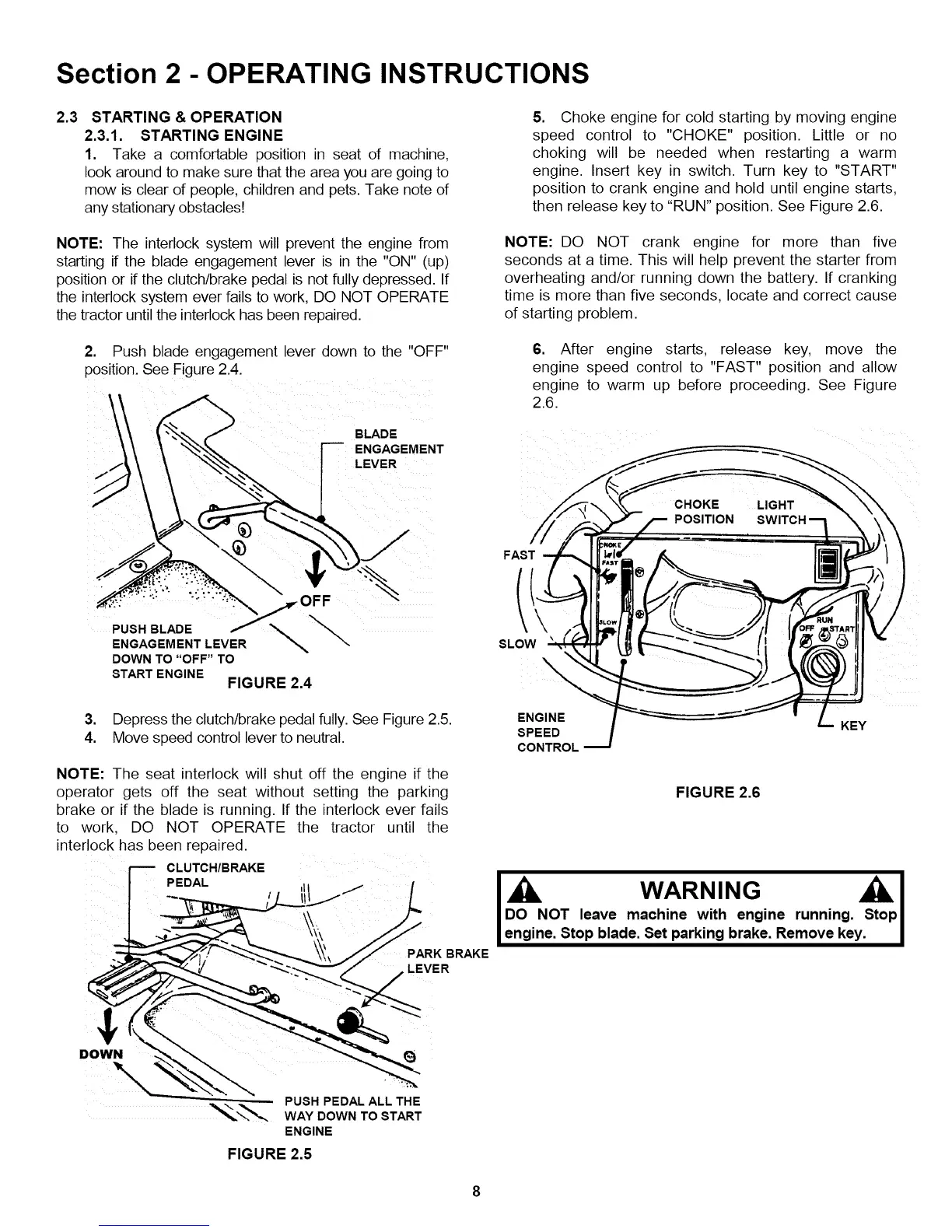 3. Depress the clutch/brake pedal fully. See Figure 2.5.