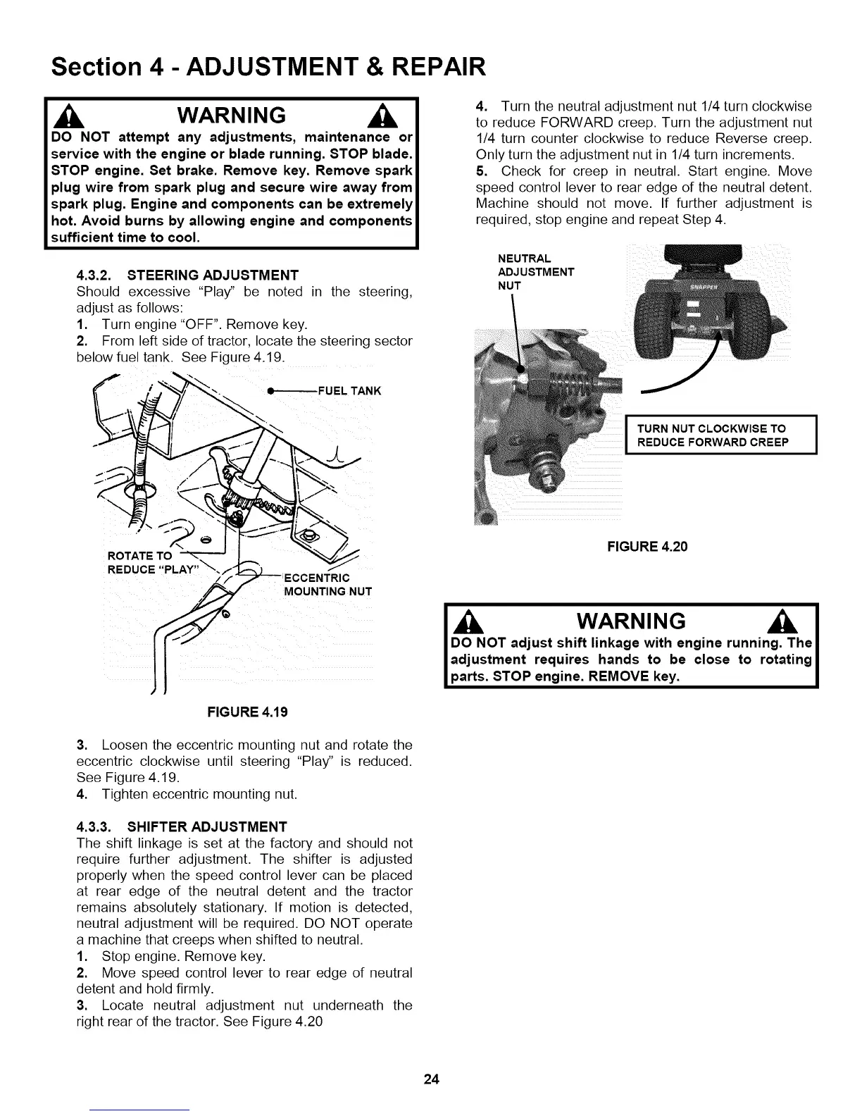 neutral adjustment will be required. DO NOT operate