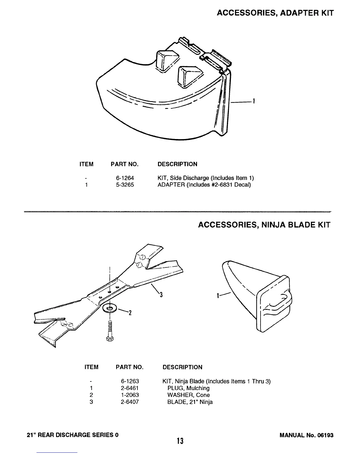 Snapper XP21500KWV - Accessories; Adapter Kit; Ninja Blade Kit
