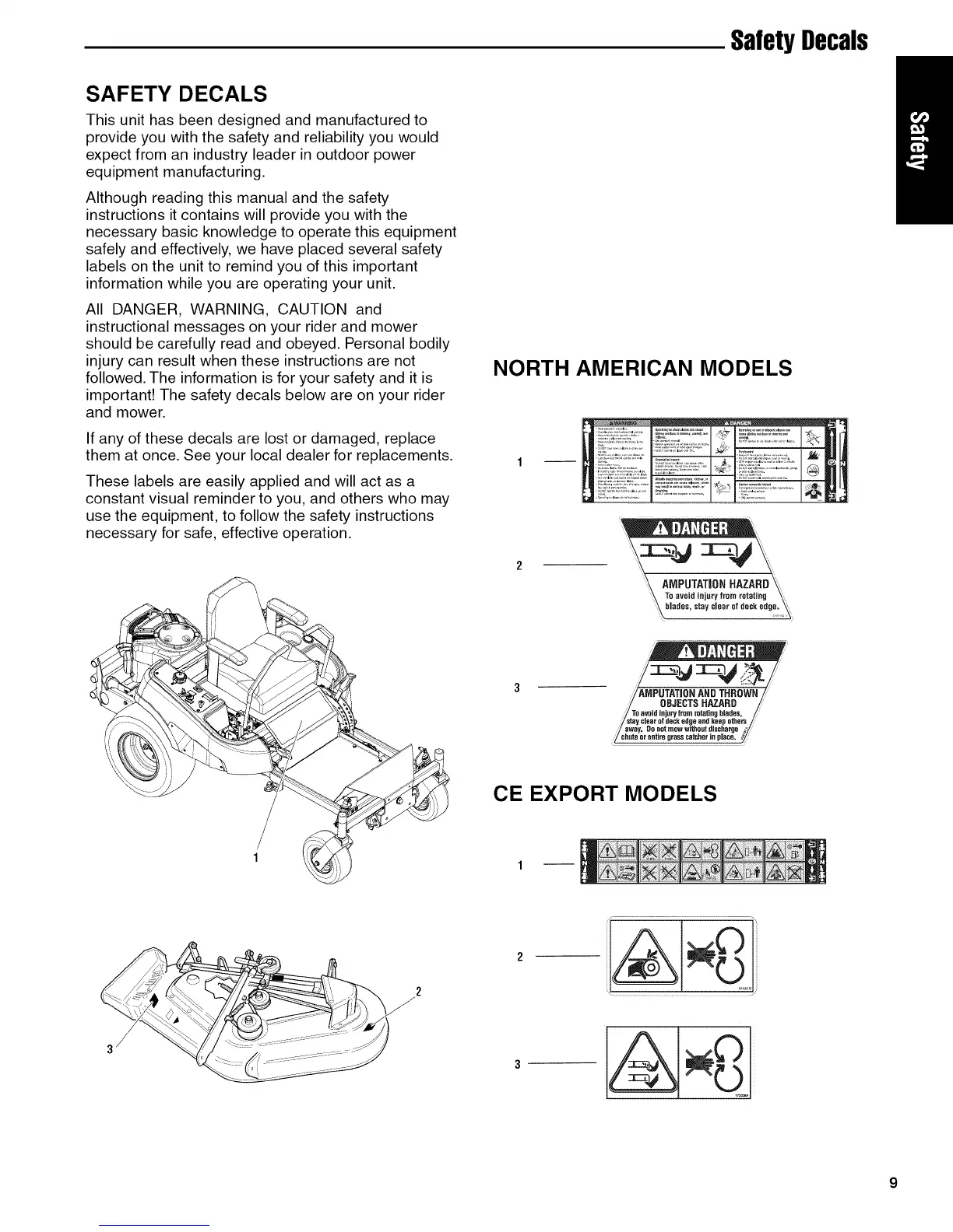 important! The safety decals below are on your rider