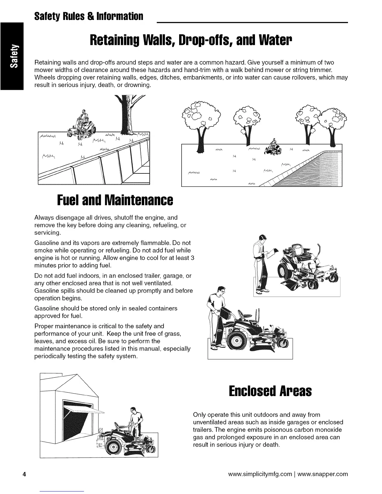 Wheels dropping over retaining walls, edges, ditches, embankments, or into water can cause rollovers, which may