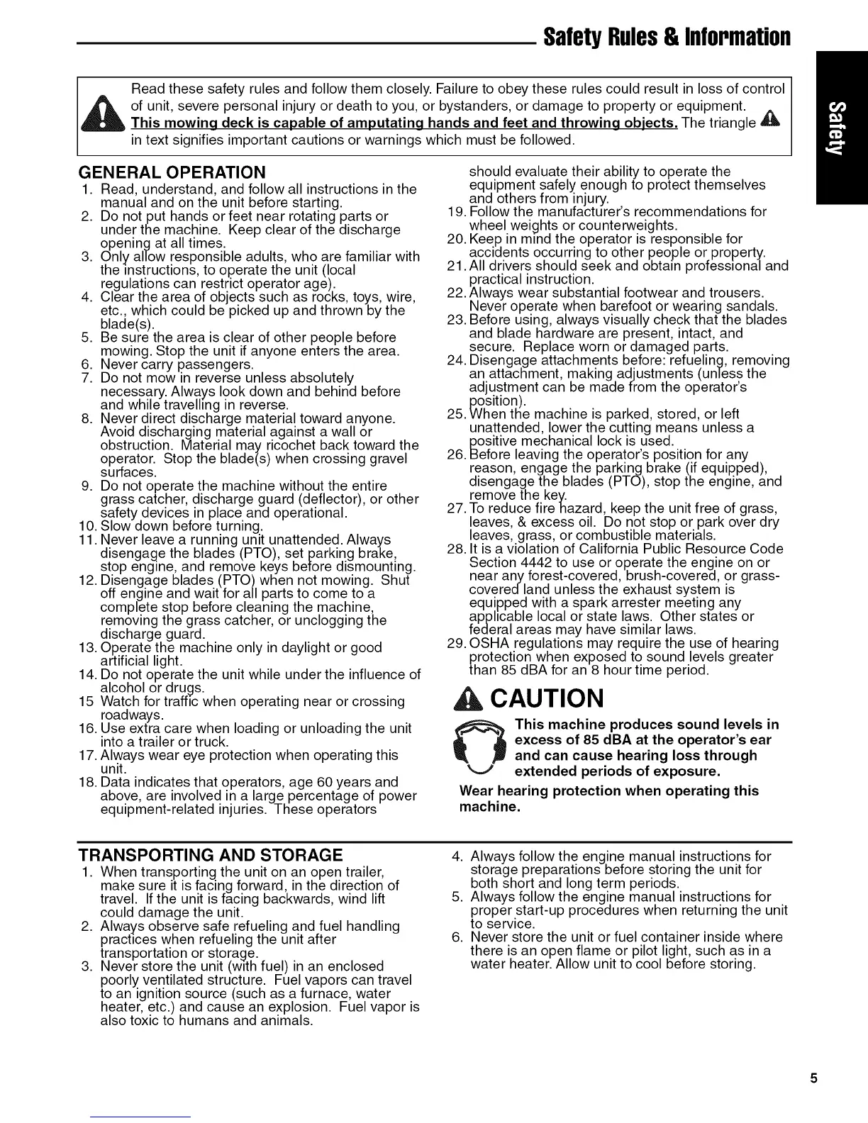 Read these safety rules and follow them closely. Failure to obey these rules could result in loss of control