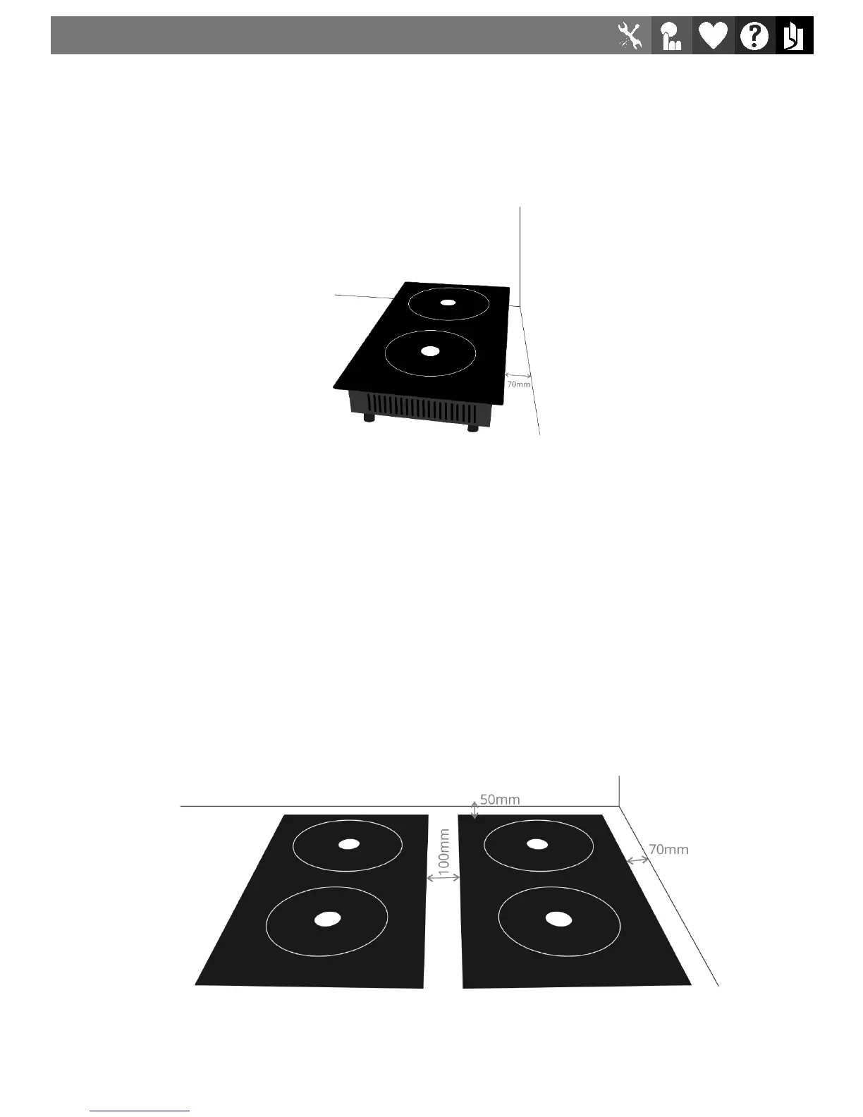 • When installing into a counter top, ensure at least 70mm beneath stove