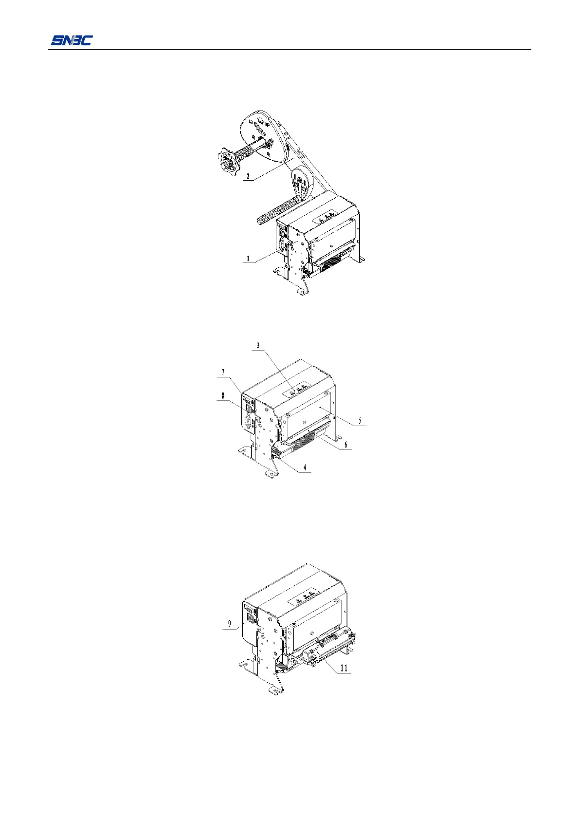 6. Tear-off bar 7. Power interface 8. Communication interface: