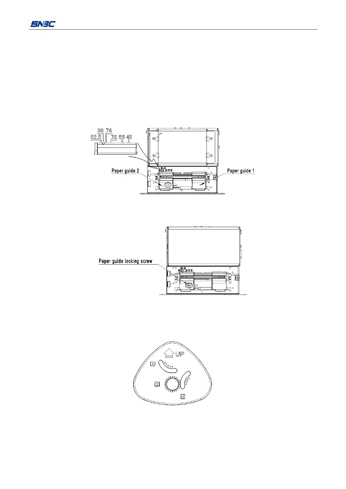 1) Move the paper guide 1 and paper guide 2 left and right, and make the path width mark on paper guide