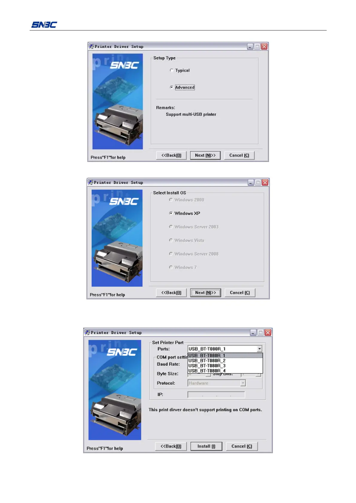 5) Set the printer driving mode and printer port. The system supports several USB installation, and then