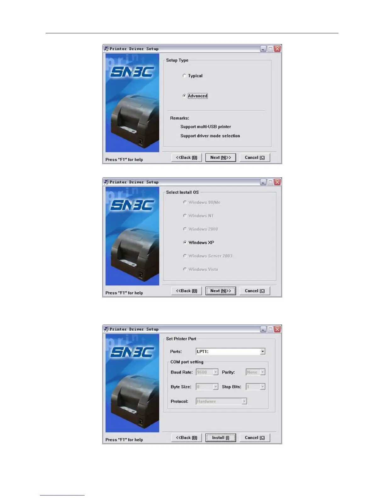 5) Set driver mode and printer port of the printer. Default settings are: port is "LPT1" as default port and