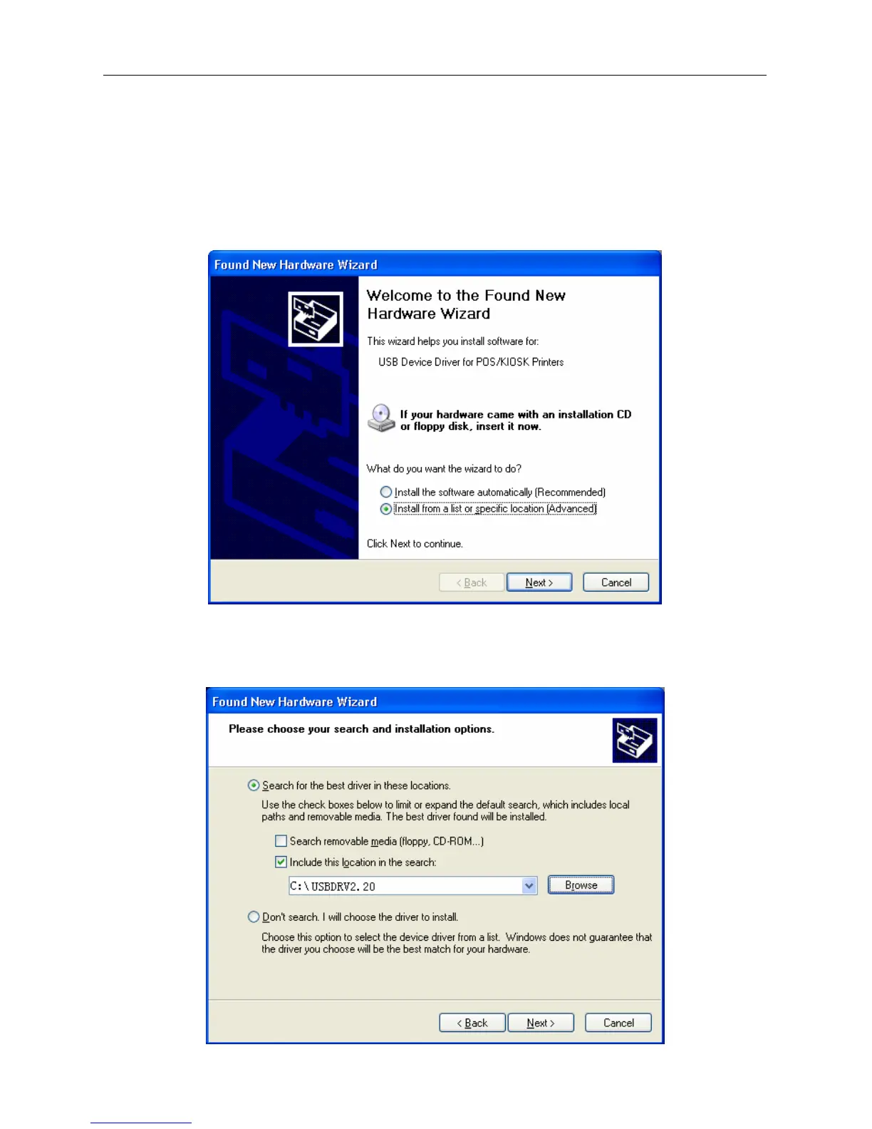 USB device automatically and popup "Add New Hardware Wizard". Select "Install from a list or