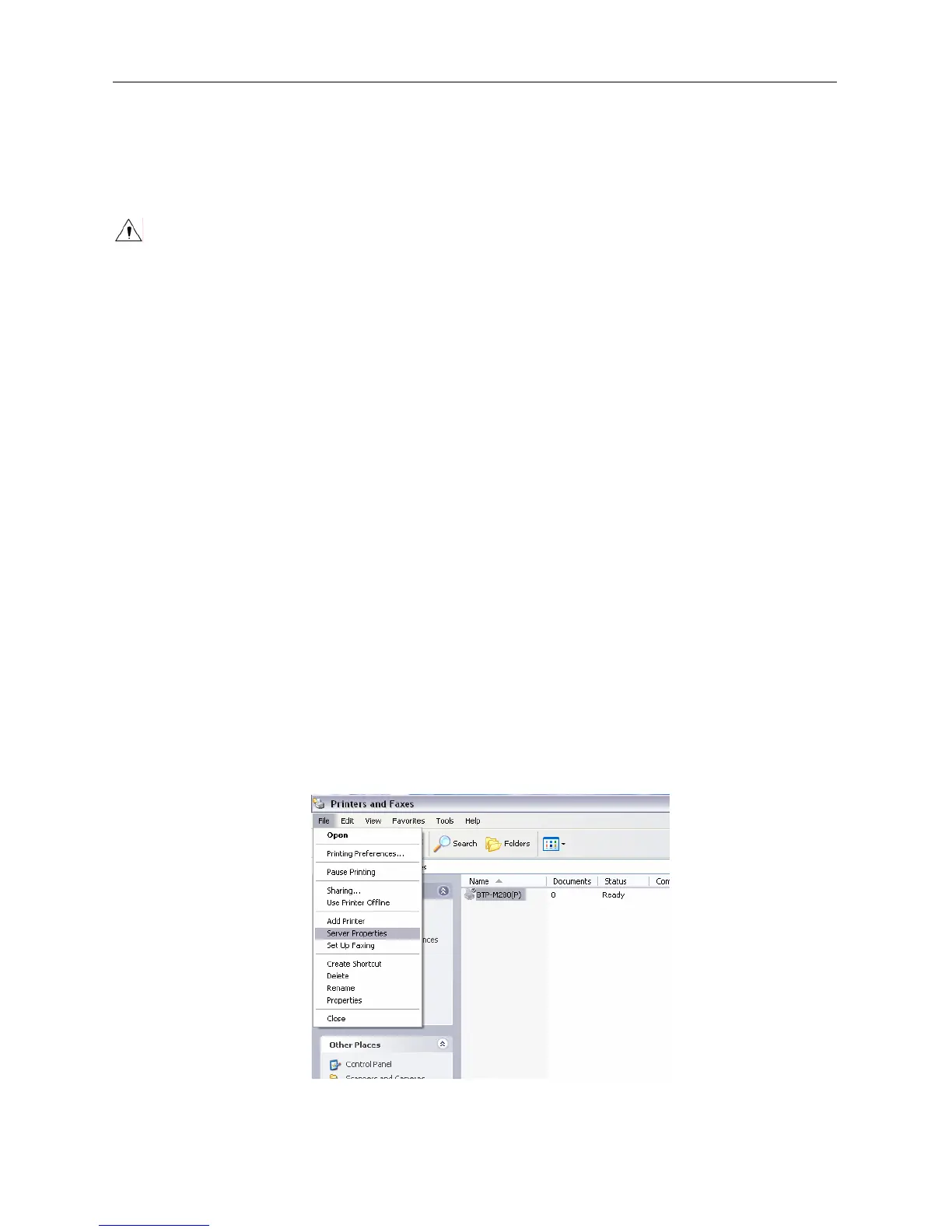 and other hardware” in “Control panel”, next click “Printers and faxes” button.