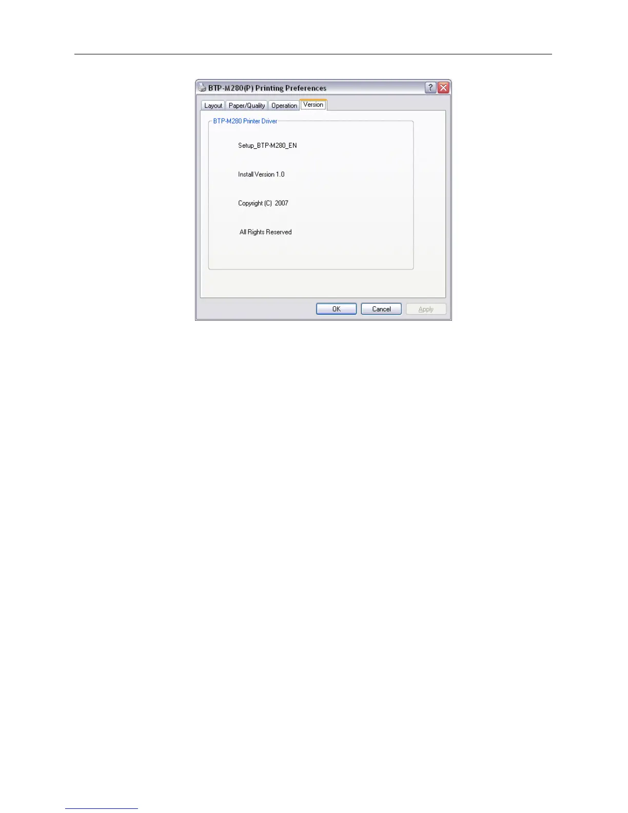 User can see the printer driver version information via this option.