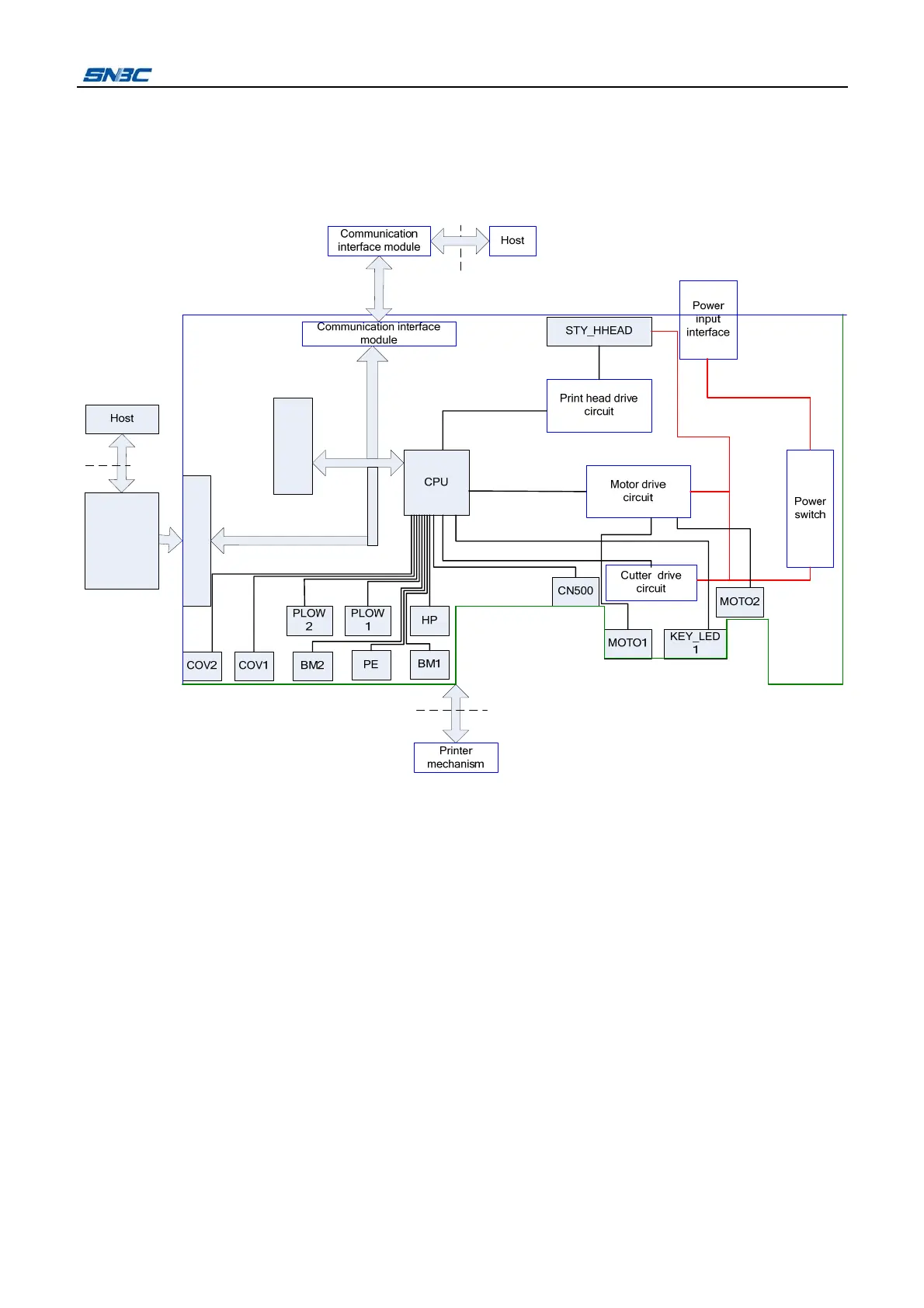 SNBC BTP-M300 - Main Control Board and Interfaces; Printer Overview and Control Board Diagram