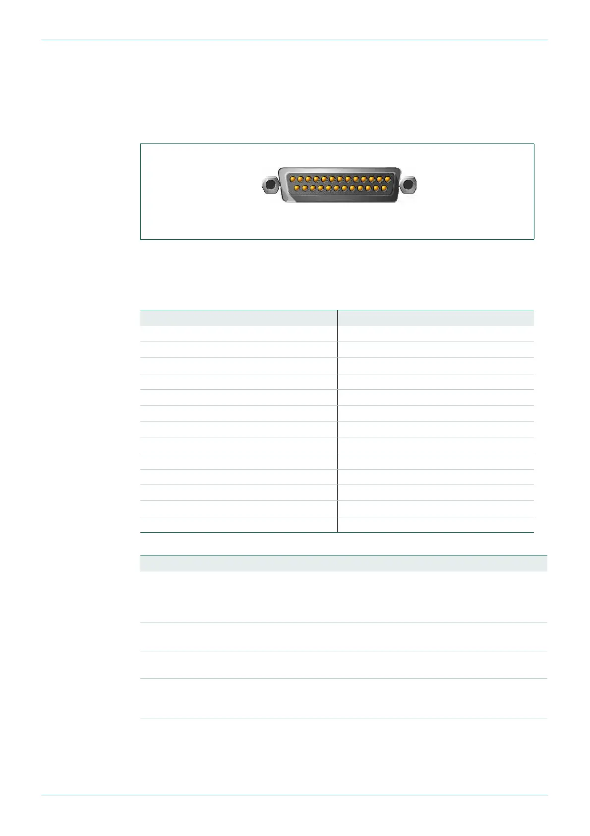 The following table gives the pin assignments for the 25 Way D-Type male shell connector.