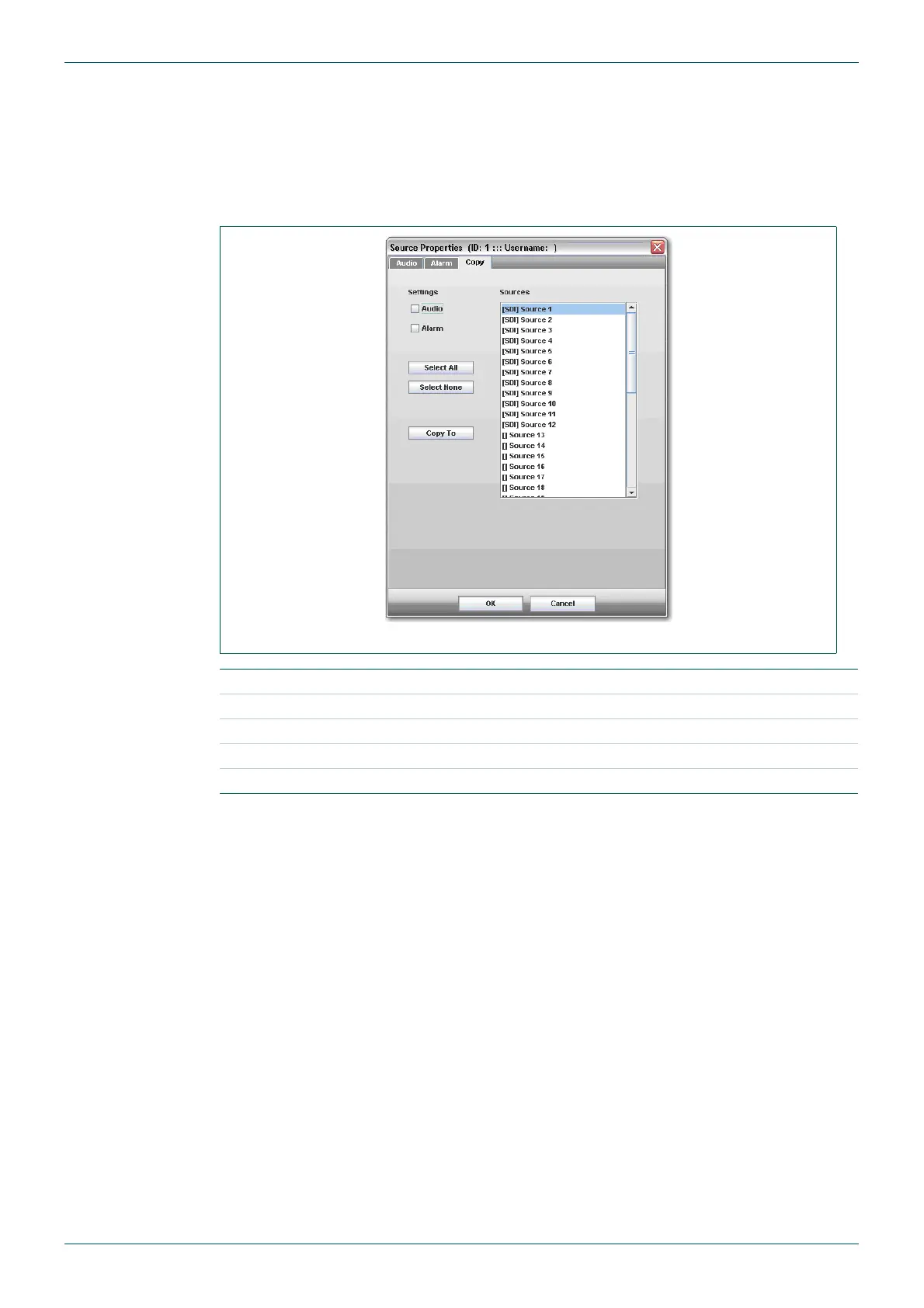 copied to other sources. Select which type(s) of settings are to be copied (Audio/alarm), then