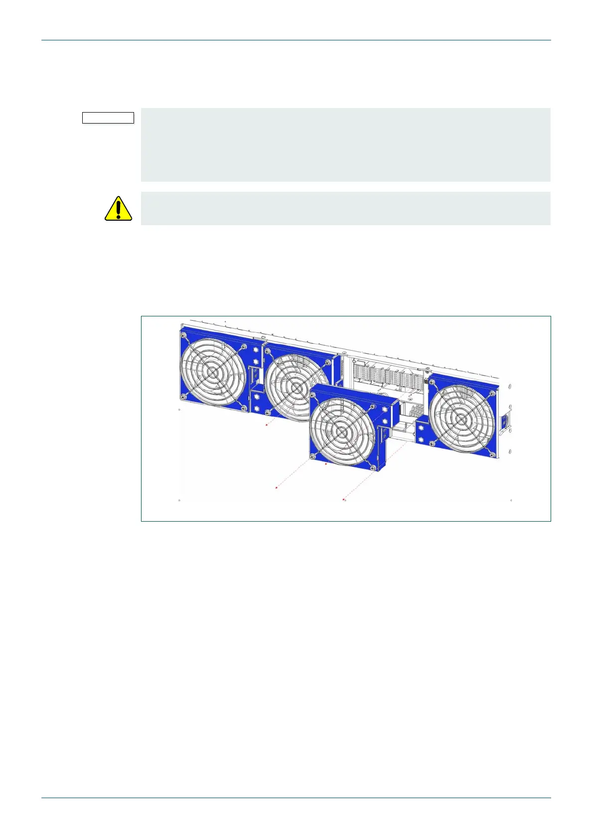 • Replacement fans modules should be fitted immediately after removal of the faulty