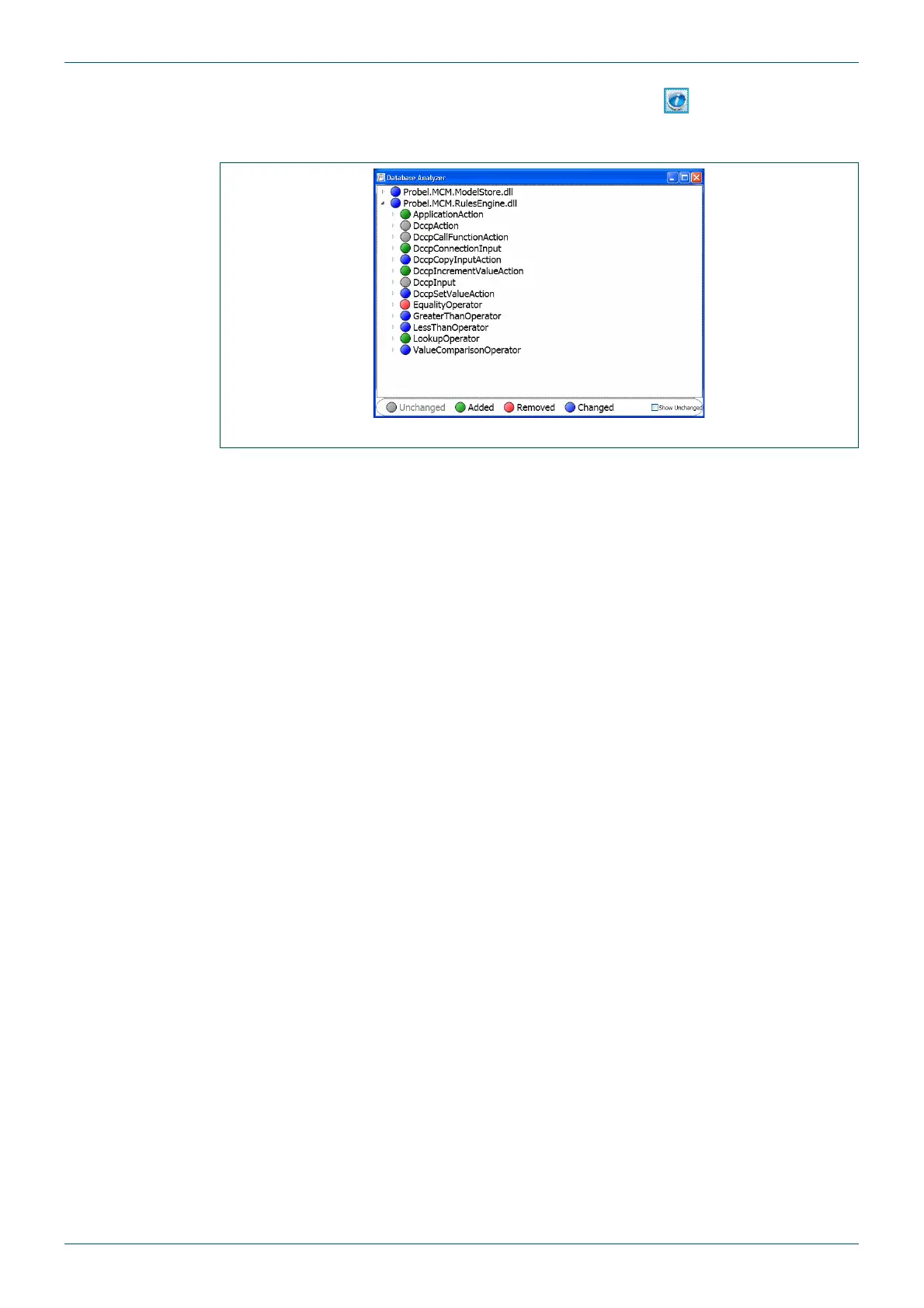 Analyzer displays, indicating the parts of the database that will change when the