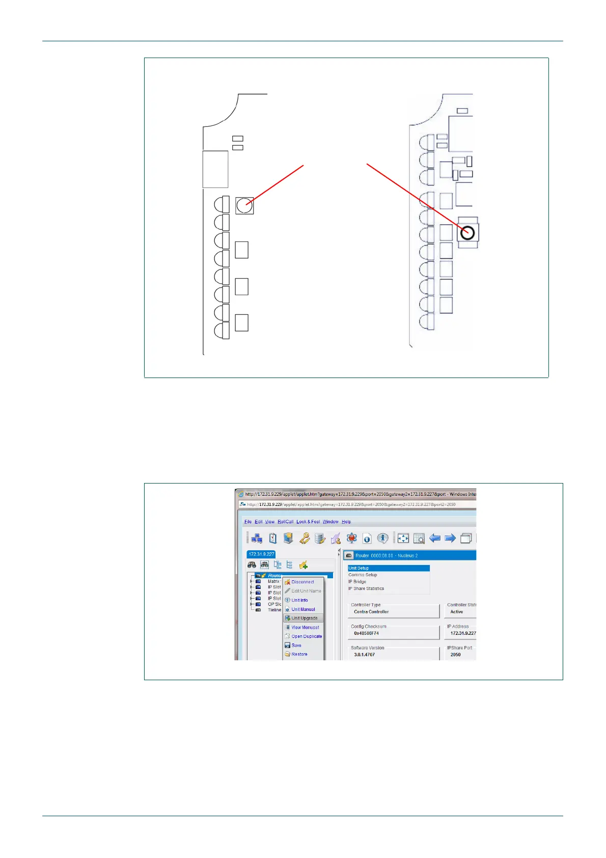 Fig 62. Nucleus Router Controller Reset Button Location (Front Edge of Modules Shown)