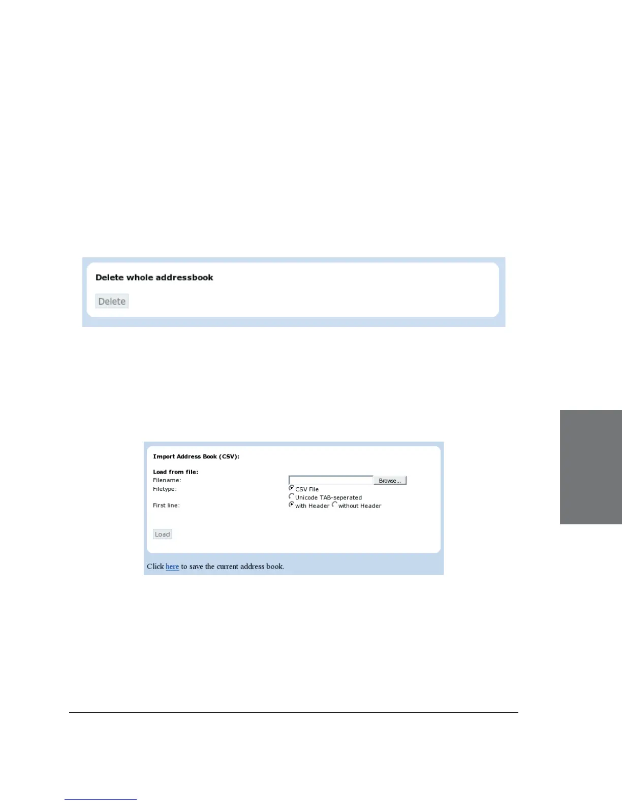 “Delete” button on the web interface page of the address book .