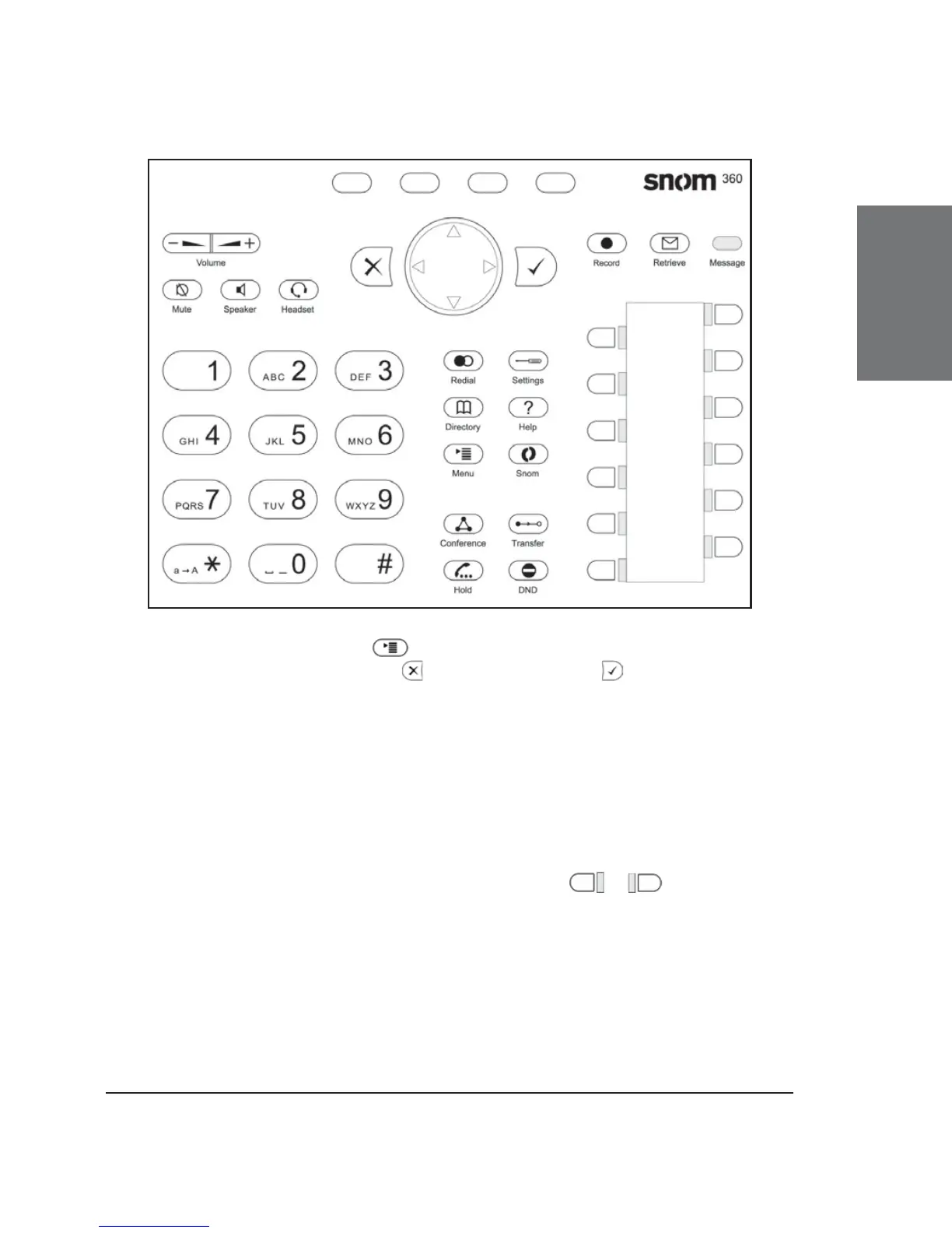 selections and inputs. For navigation, use the large round navigation key