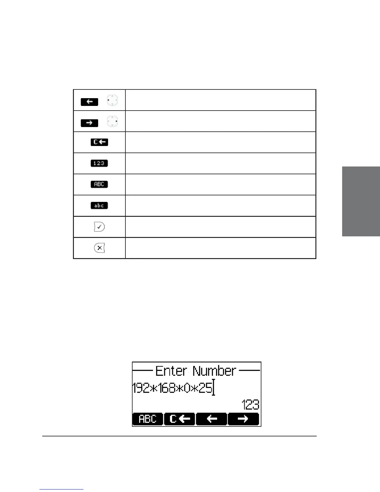 Enter the IP address via the numeric block. Use the “*” key