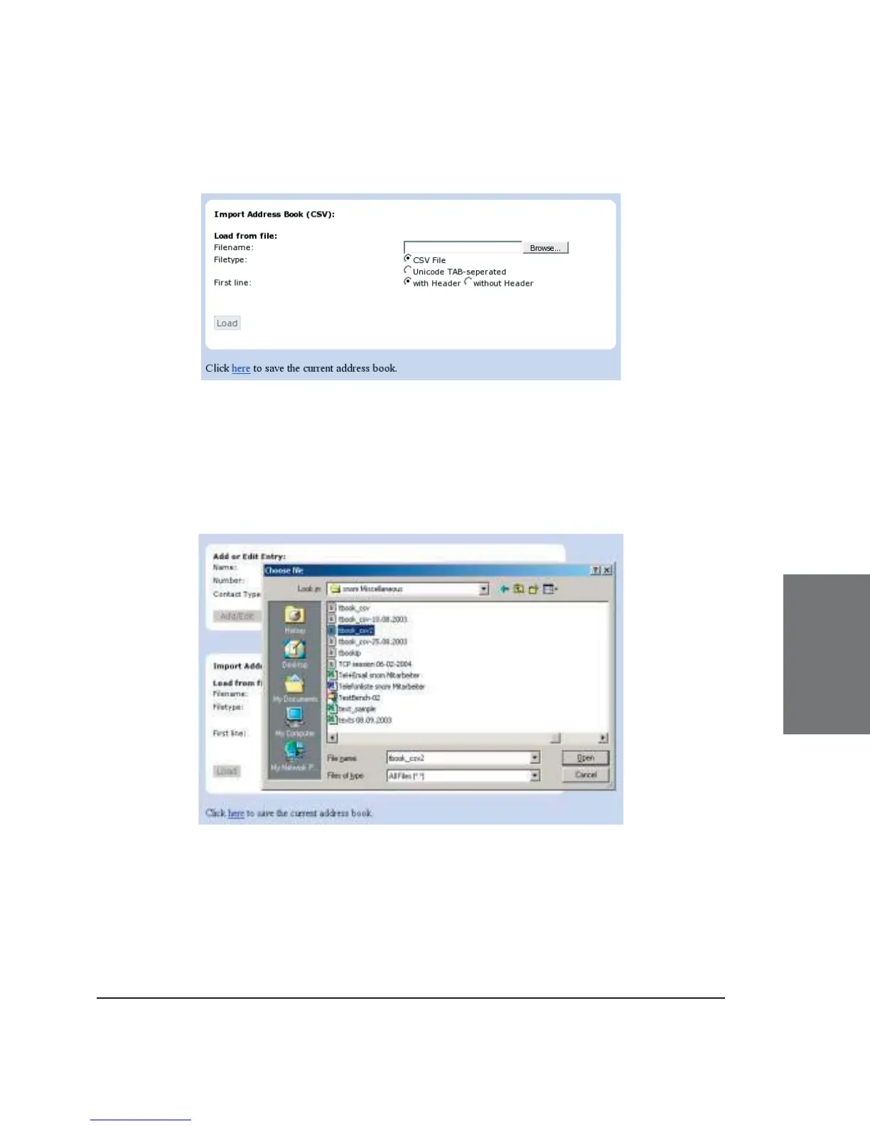 the page Phone / Phonebook in the section entitled “Import Address Book