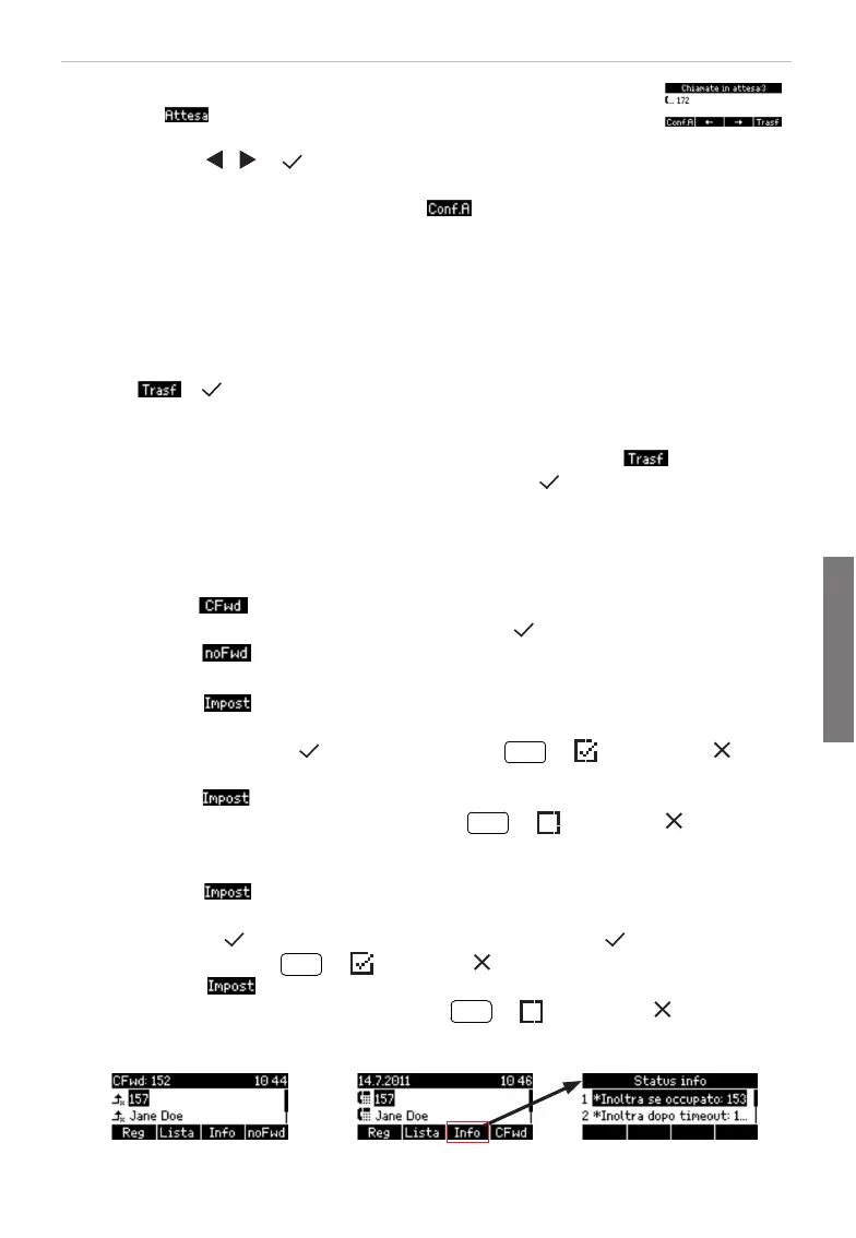 • Attivare: > 2 Impostaz. Ch. > 1 Trasferimento chiamata > 2 Se