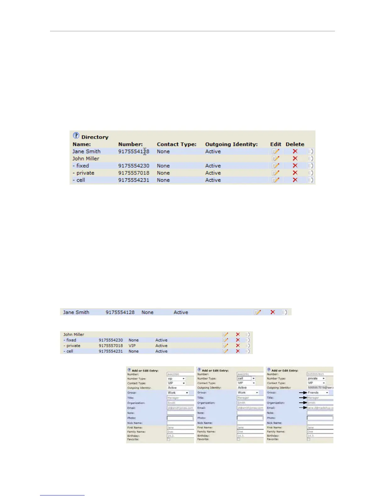 The built-in directory of the phone can hold 1000 entries. Entries can be added and edited on the