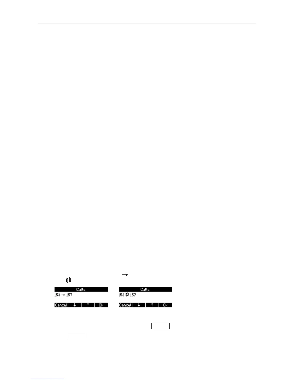 the display. For example: "153 157" indicates that extension 153 is calling extension 157;