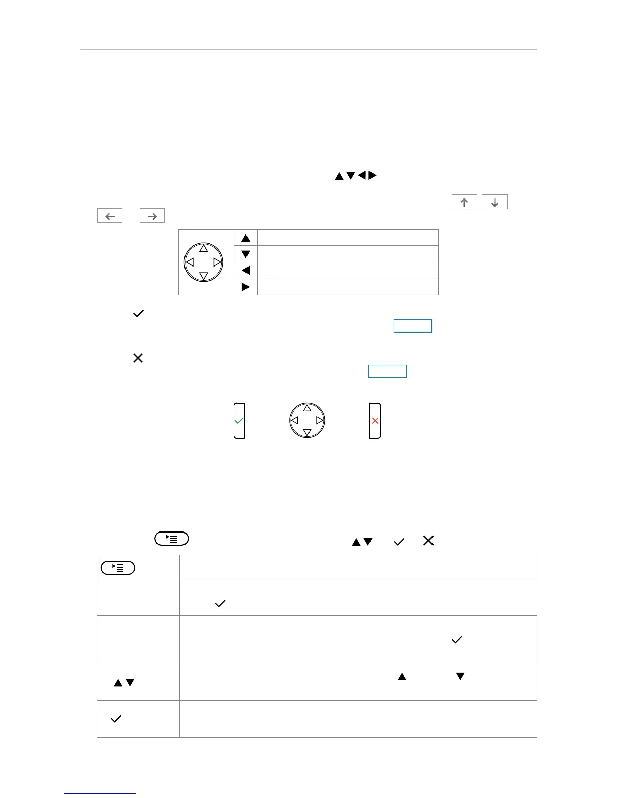 : To confirm actions and input. Depending on the context, they indicate pressing the