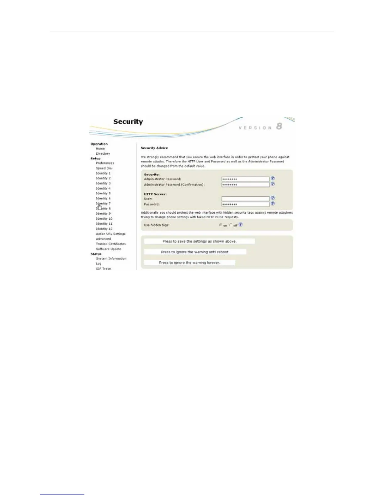 If you do not wish to set an HTTP password, you can turn off the reminder on the phone’s display