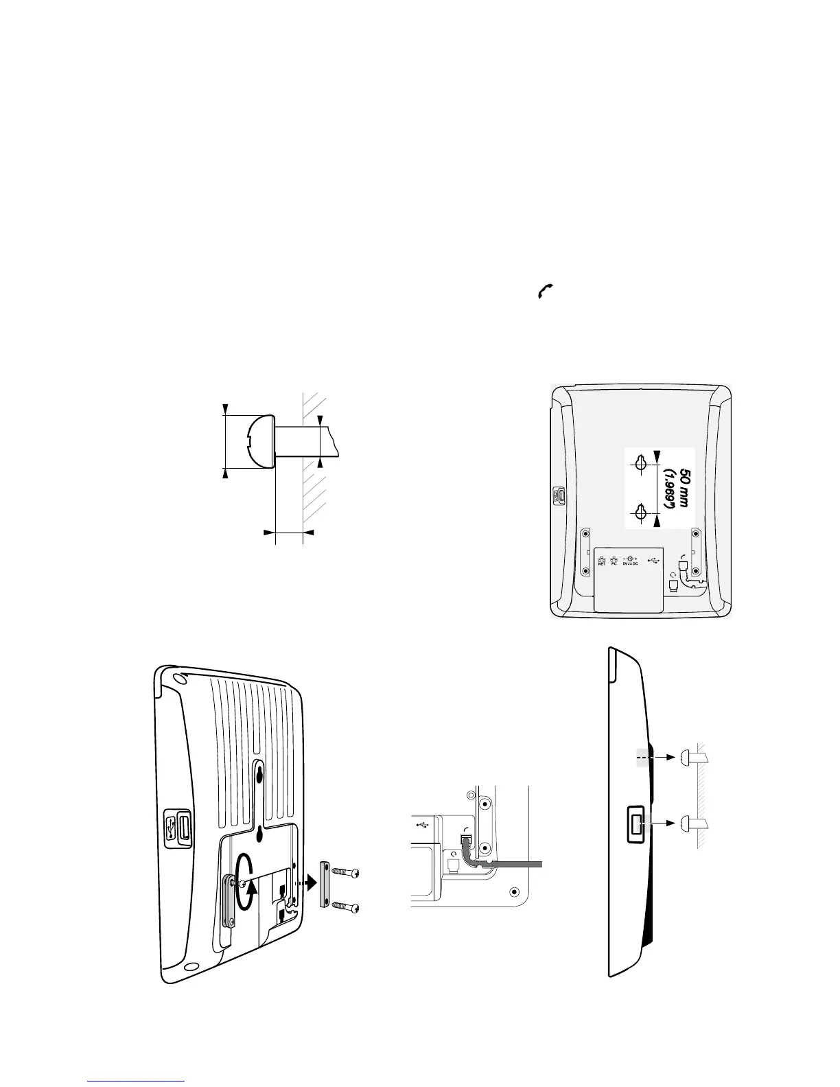 4. Hang the phone on the screws by placing the holes on the back of the phone over them (Fig. 5).