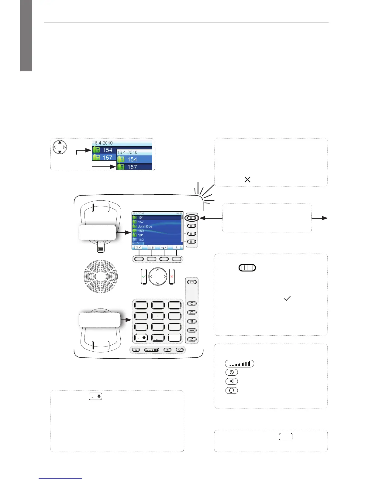 • Call pickup (green key):