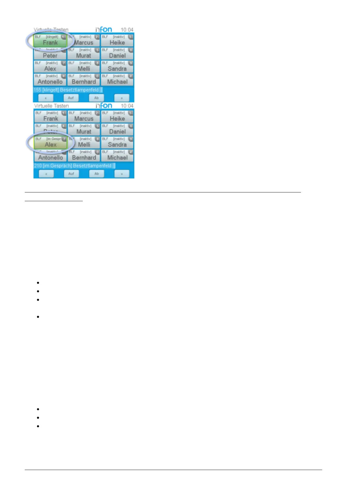 - You can start a call by pressing the respective busy lamp key. If an internal extension is