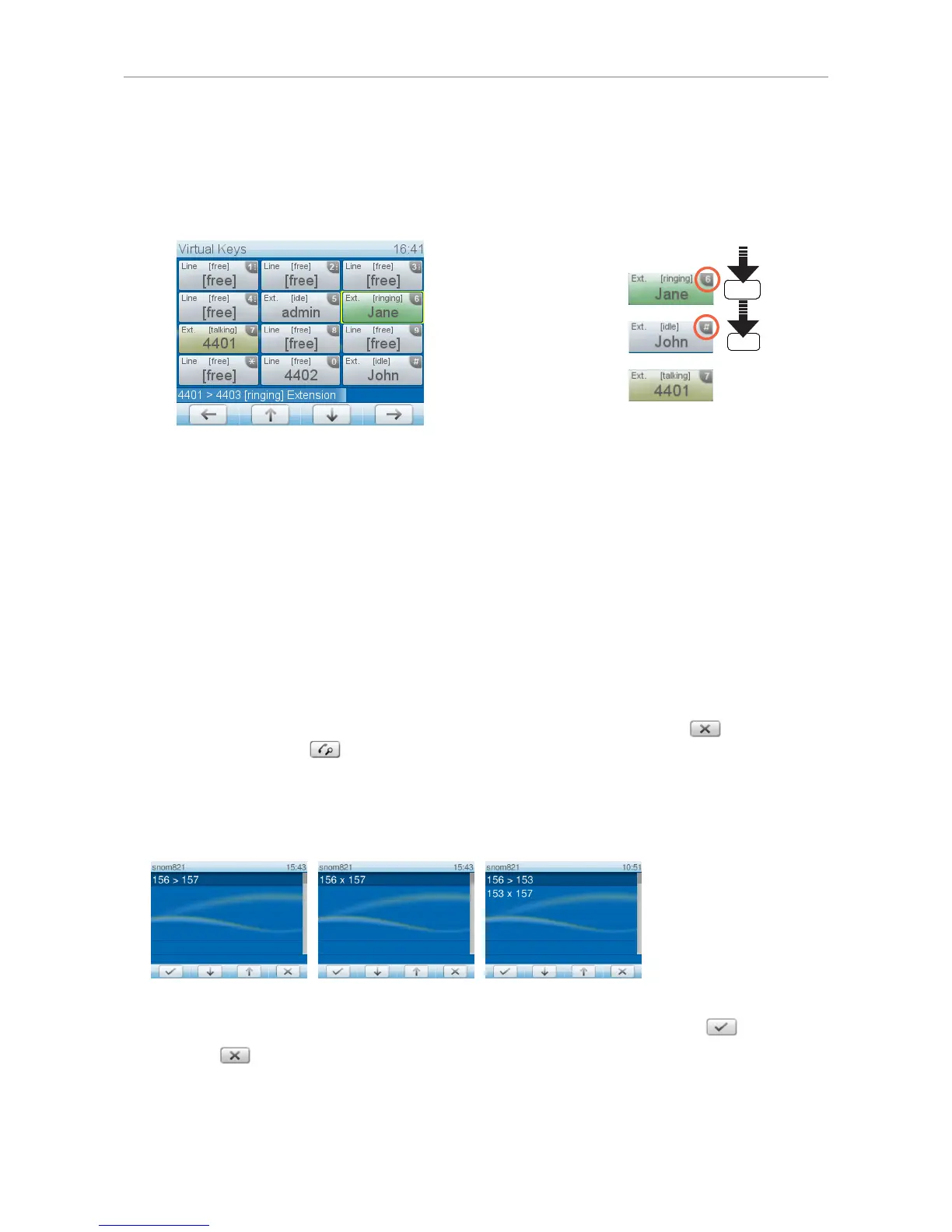 When a call is ringing on a monitored extension, the virtual key screen appears. Calls ringing