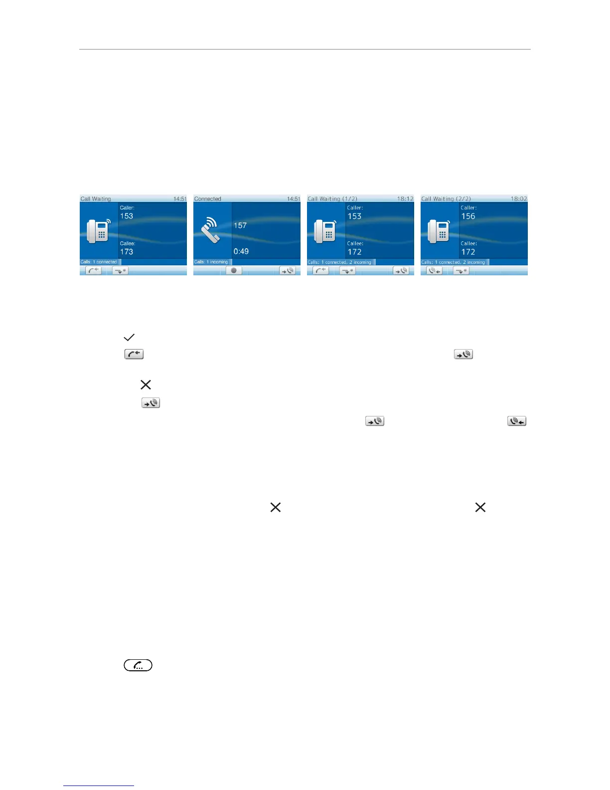 ◦ reject the incoming call by pressing . The caller hears the busy signal. Pressing for three