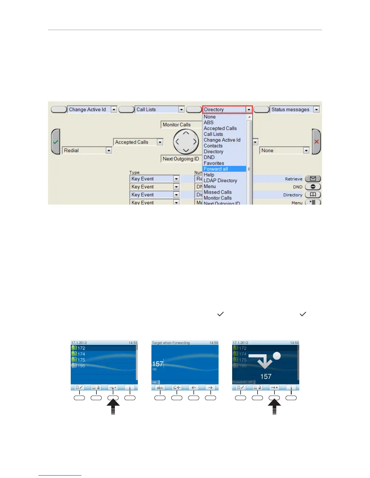 The functionality "Forward all" redirects all incoming calls to another phone or a mailbox. It is possible