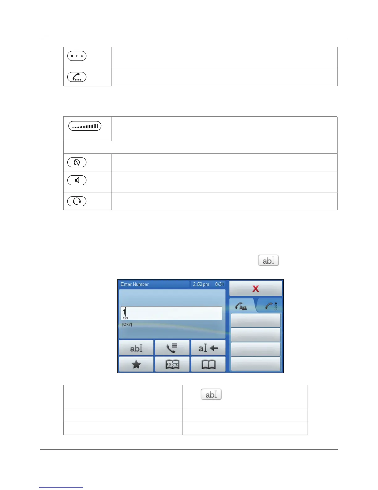 Toggle between handsfree and handset mode. Dial number