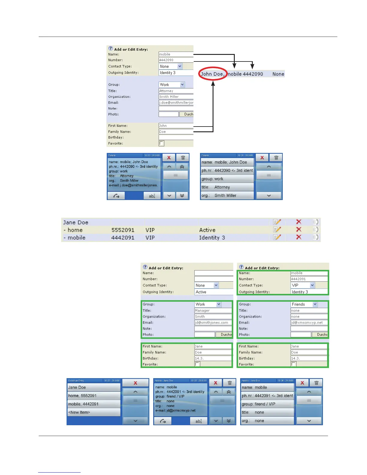 Entry with several associated phone numbers: