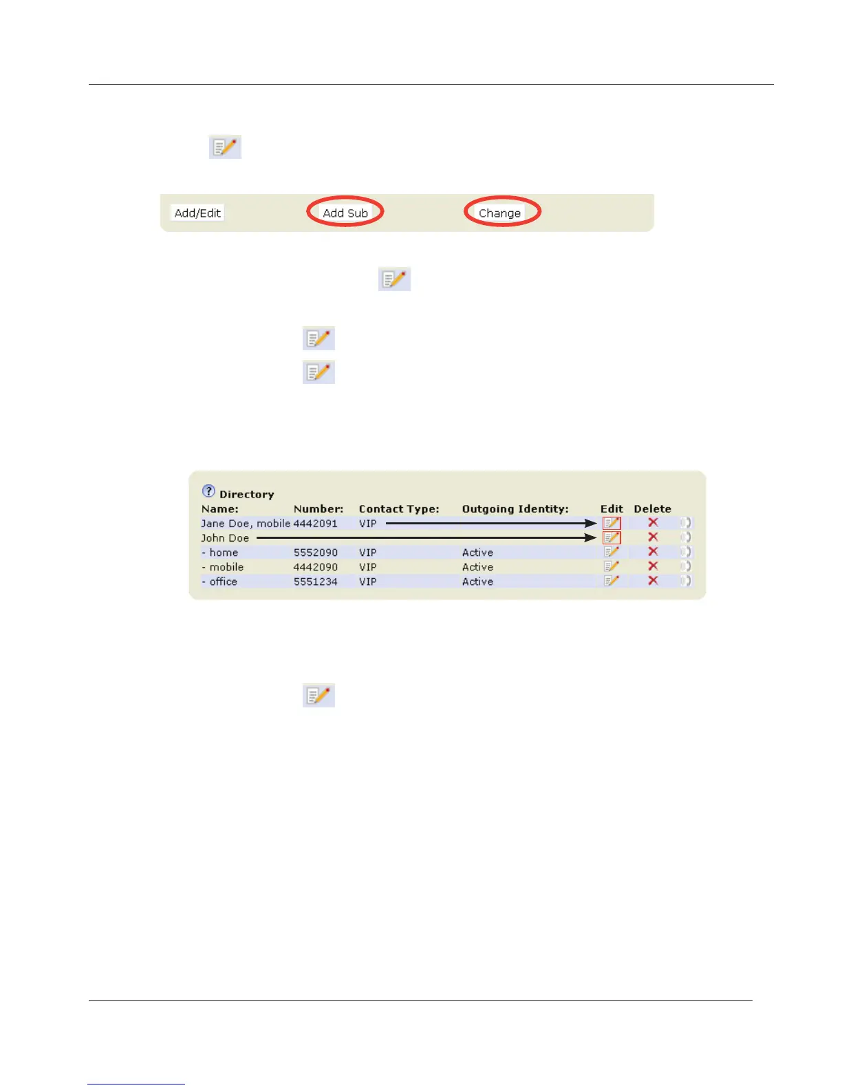 in a phone number's line if you wish to edit subentry