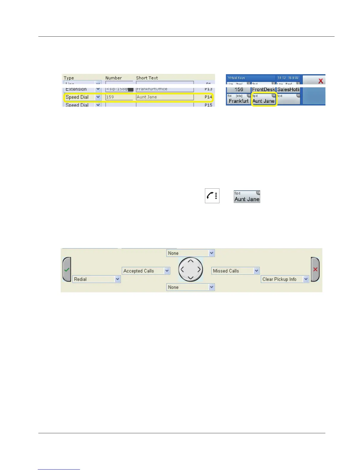 Example: Dialing Aunt Jane's phone number by tapping virtual key 14 (P14).