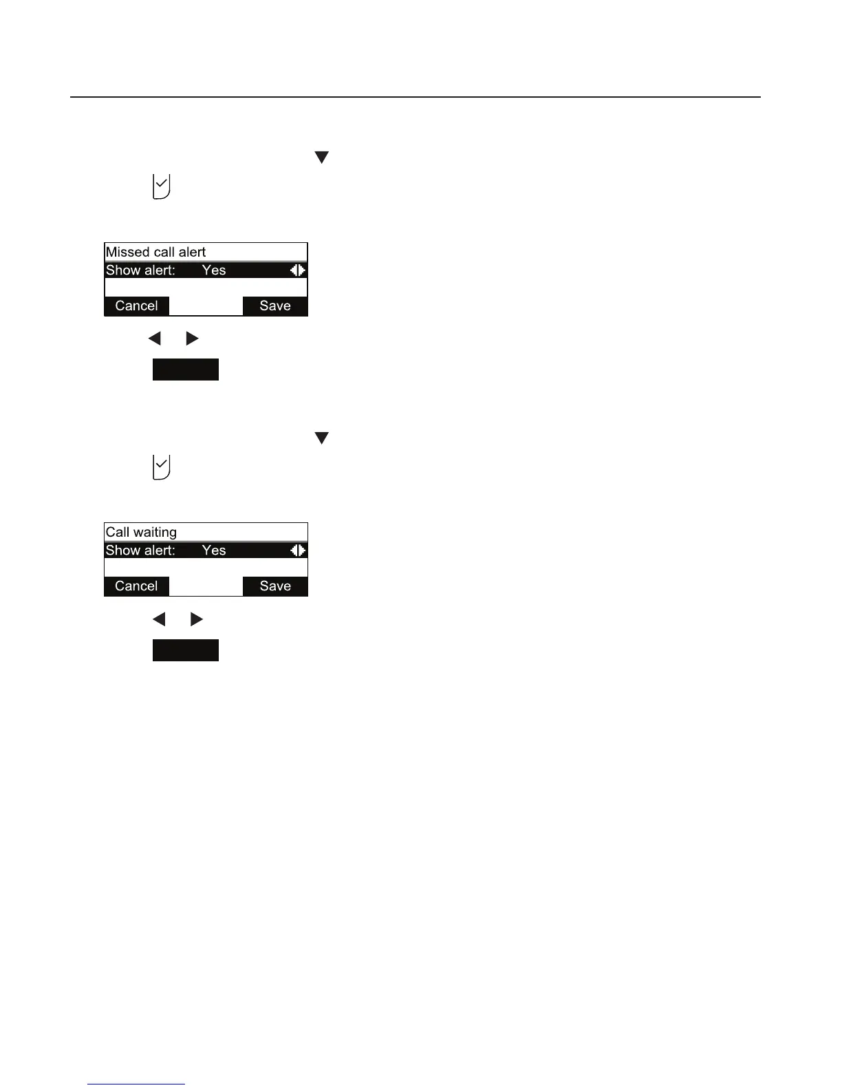 3. Press or to turn missed call alerts on (Yes) or o (No).