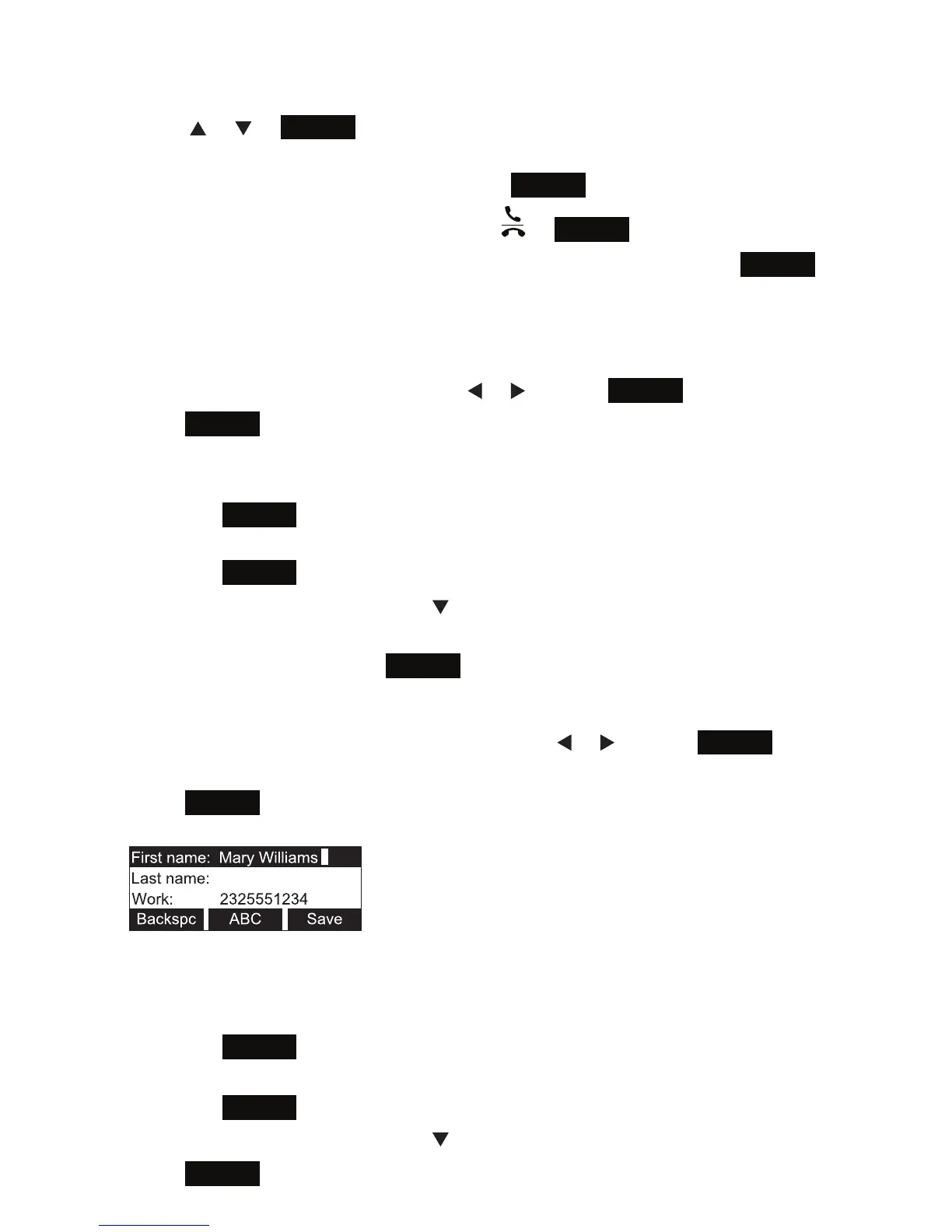 3. Use the dial pad keys to change the first name, last name, and contact numbers as