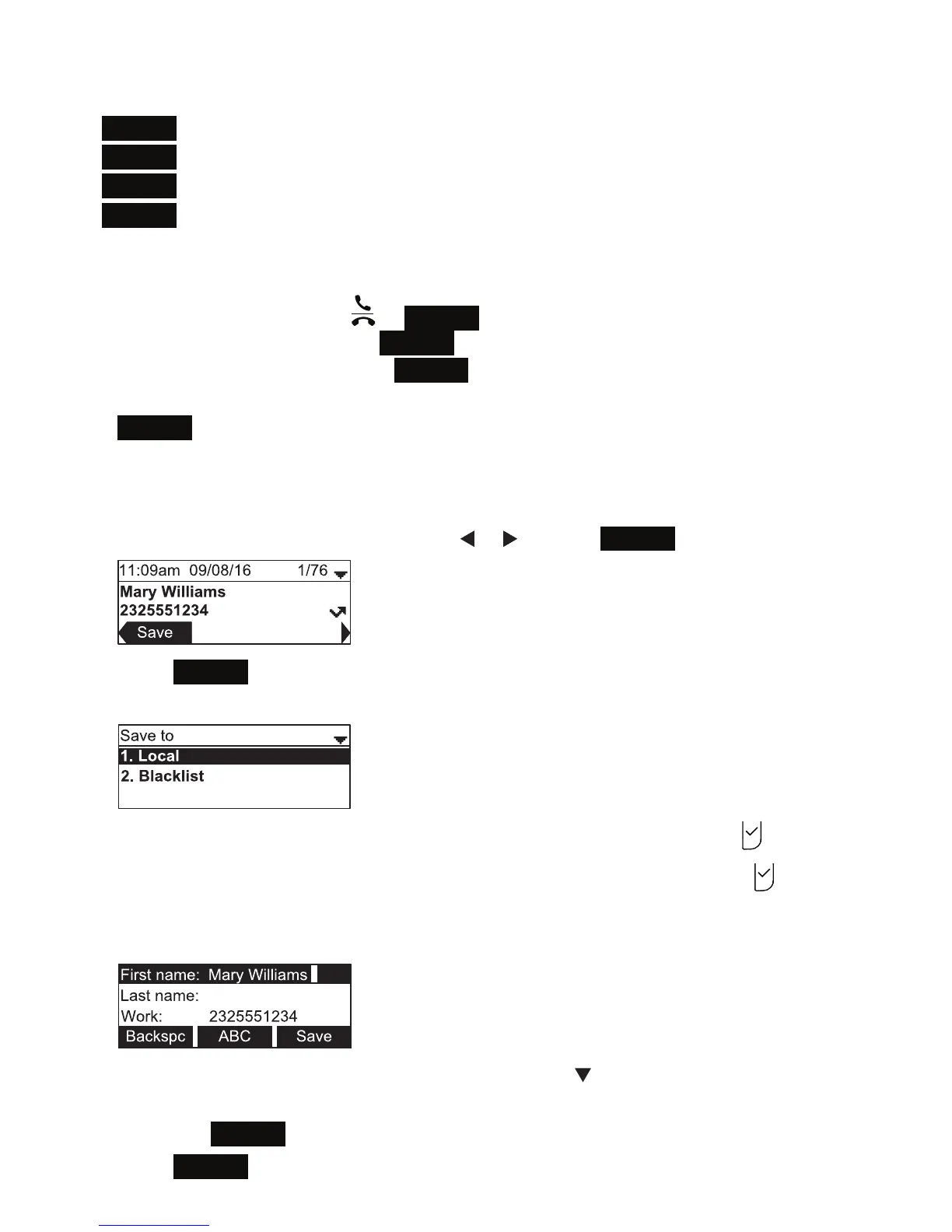 • To save the entry to your blacklist, highlight Blacklist and then press